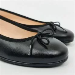 Womens Leather Low Wedged Ballerinas Bow 210 Black, By Casual