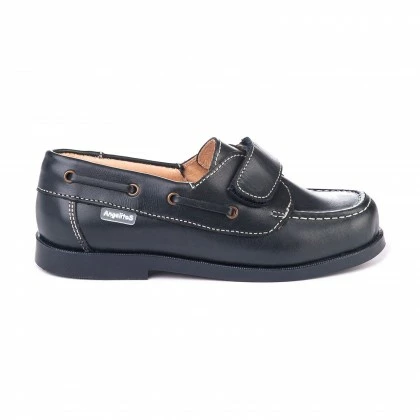 Boys Leather School Boat Shoes Velcro Rounded Toe 350 Navy, By AngelitoS