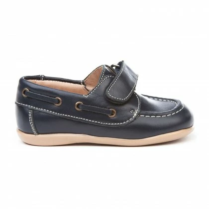 Childrens Boy Leather School Boat Shoes Velcro Rounded Toe 354 Navy, By AngelitoS