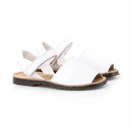 Girls Nappa Leather Menorcan Sandals Velcro 202 White, By AngelitoS
