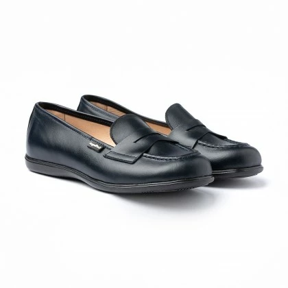 Girls Nappa Leather School Loafers Mask 467 Navy, By AngelitoS
