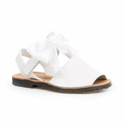 Girls Patent Leather Menorcan Sandals Satin Bow Velcro 206 White, By AngelitoS
