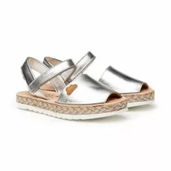 Girls Metallic Nappa Leather And Sack Menorcan Sandals Padded Insole Velcro 223 Silver, By AngelitoS