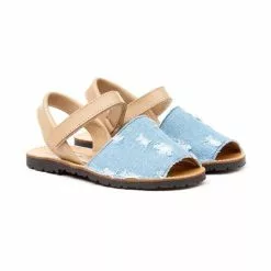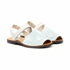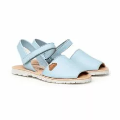 Girls Nappa Leather Menorcan Sandals Padded Insole Velcro 220 Sky Blue, By AngelitoS