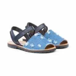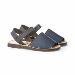 Girls Nappa Leather Menorcan Sandals Velcro 202 Navy, By AngelitoS