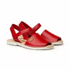 Girls Nappa Leather Menorcan Sandals Velcro 202 Red, By AngelitoS