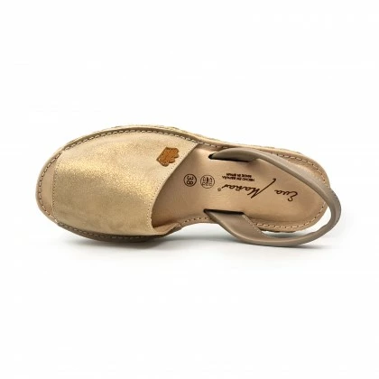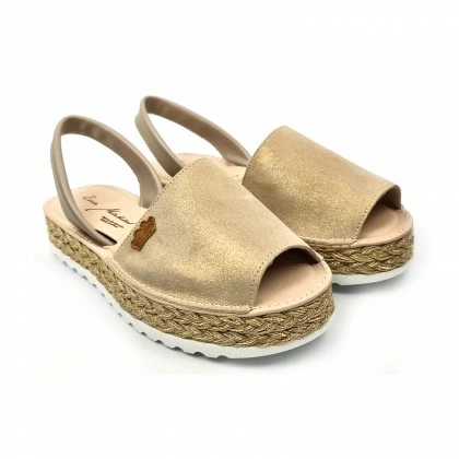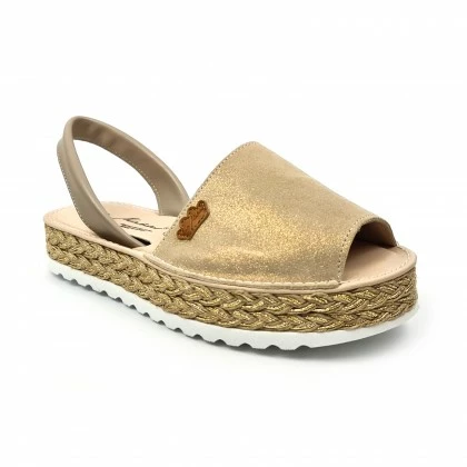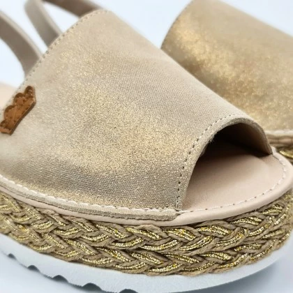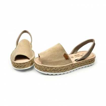 Woman Leather And Glitter Menorcan Sandals Platform Padded Insole 1251 Taupe, By Eva Mañas