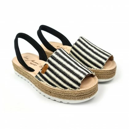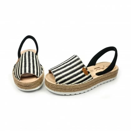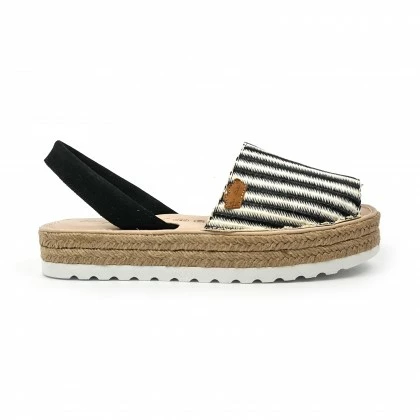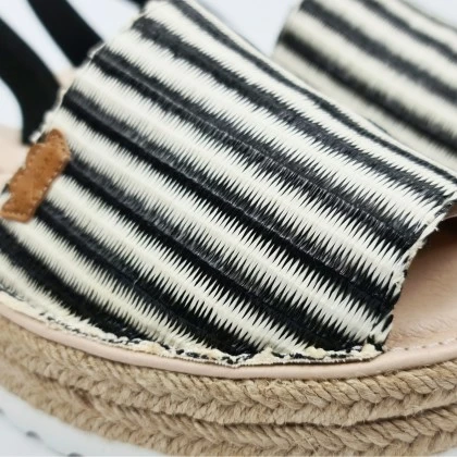 Woman Leather And Raffia Menorcan Sandals Platform Padded Insole 1255 Black, By Eva Mañas