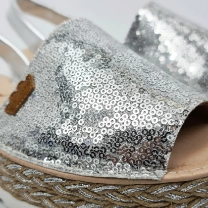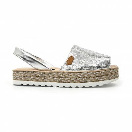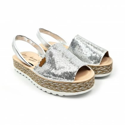 Woman Leather And Sequins Menorcan Sandals Platform Padded Insole 1253 Silver, By Eva Mañas