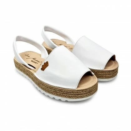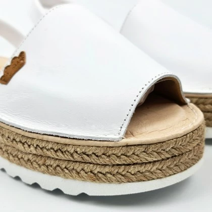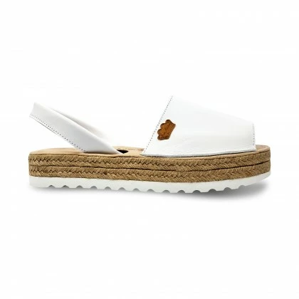 Woman Leather Menorcan Sandals Platform Padded Insole 1252 White, By Eva Mañas