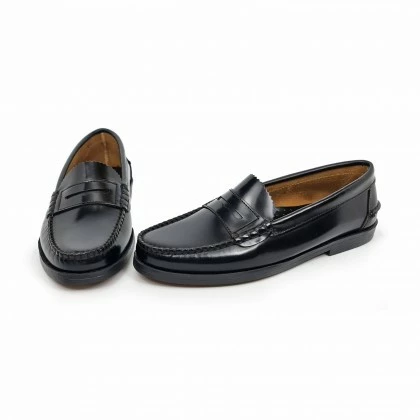Womens Florentik Leather Beefroll Penny Loafers Rubber Sole 400 Black, By María Tovar